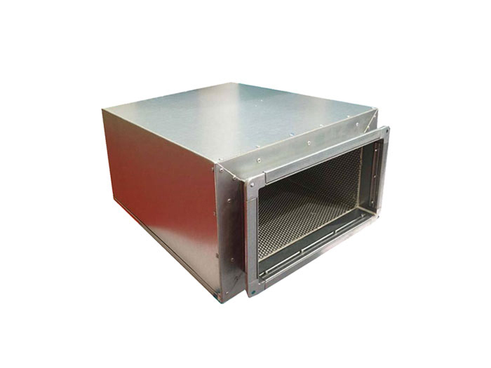 消聲降噪靜壓箱包括靜壓箱本體,靜壓箱本體的上表面和靜壓箱本體的底面均開設(shè)有通口,靜壓箱本體的內(nèi)側(cè)壁通過銷軸鉸接有兩組等距離排列的消聲片,兩組消聲片相互靠近的一側(cè)面均固定連接有松緊帶,靜壓箱本體的內(nèi)側(cè)壁固定連接有定位板,定位板的上表面固定連接有兩個(gè)吸音棉,兩個(gè)吸音棉相互遠(yuǎn)離的一側(cè)面均與靜壓箱本體的內(nèi)側(cè)壁固定連接,定位板的上表面固定連接有彎板,靜壓箱本體的內(nèi)側(cè)壁固定連接有蜂窩板,蜂窩板的下方設(shè)有過濾網(wǎng),定位板的上表面開設(shè)有四個(gè)通風(fēng)口。
